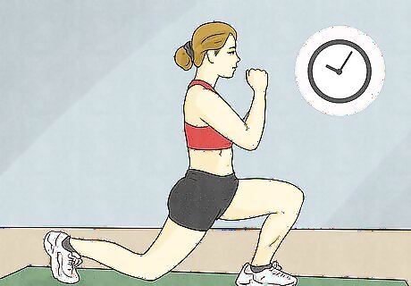 Spend 5 to 10 minutes warming up before every workout. Do a progressive aerobic activity that uses the same muscles you want to work out. For instance, slowly jog if you'll be going for a longer run. Not sure what to do? Try jumping jacks, leg or arm circles, or even dancing. Just get your blood pumping. Then, spend a few minutes stretching so you reduce the risk of injury during your workout. Stretches can be as simple as you like. Try bending over and touching your toes, rotating your torso with your hands on your hips, or doing walking lunges.
