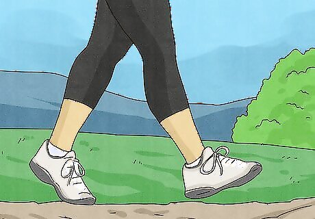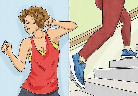 Take a brisk walk and hit the stairs. Try to walk around your neighborhood 2 or 3 days a week for as long as you can. Even just a 10-minute walk can really add up! Take the stairs whenever you see them, or if you live in an apartment building, climb up and down the stairs when you start or finish your walk. This is a fantastic strength-building aerobic exercise. To help you get up and around, figure out when you have the most energy during your day. Try to plan your walk during this window of time so you're more likely to follow through with it.