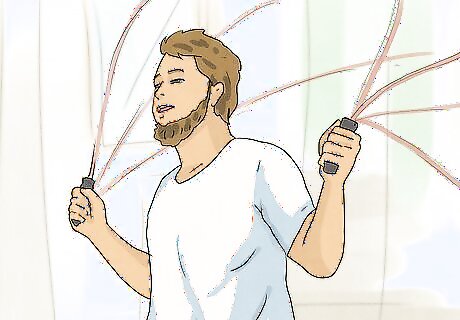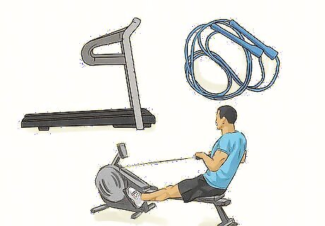 Invest in cardio equipment you can use at home. Sure, some cardio equipment takes up space, but you'll get a lot of use out of it! Get a stationary bike, rowing machine, or treadmill if you're committed to cardio at home. If you're short on space but want a good workout, pick up a jump rope and mini-trampoline. You might see mini-trampolines called rebounders and they're great if you don't have much room in your home for cardio equipment.