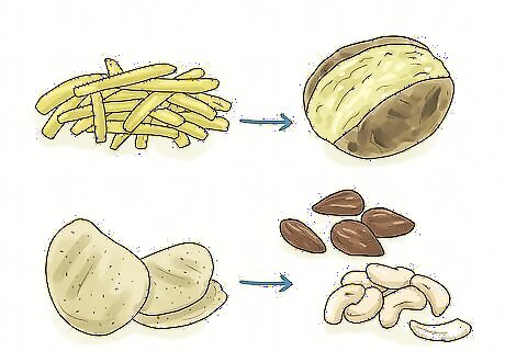 Limit your intake of saturated fat. Diets that are high in saturated fat can cause high cholesterol and heart disease. This means cutting back on cookies, pastries, fried food, and fast food. Try to make healthy swaps, like eating baked potatoes instead of french fries or a handful of nuts instead of potato chips. Avoiding these foods can also help you cut out excess sugar in your diet.
