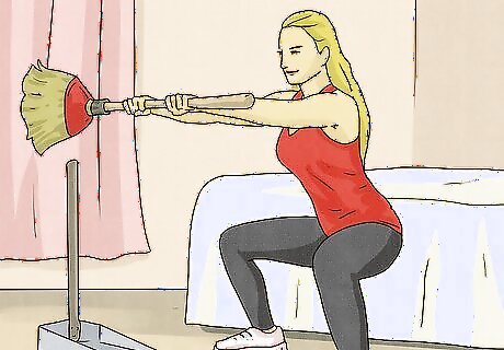 Work out as you clean to squeeze in some fitness time. Life can get busy and it might feel hard to fit in a dedicated workout, but you can still be active every day! Think about all the physical things you do around your home and try to do a few of them at a brisk pace on the days that you can't necessarily work out. You might: Rake leaves or mow the lawn with a push mower Mop the floor Scrub the tub Vacuum