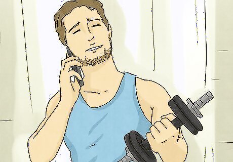 Squeeze bursts of physical activity into short breaks. Think about all the times that you're waiting throughout the day—on the phone stuck on hold, during a commercial break, or listening to commercials on the radio. Tell yourself to get active during these breaks. You'll be surprised at how much you can accomplish! For instance, do jumping jacks or sit-ups while you wait during commercials or hold a small dumbbell and pump your arms while you talk on the phone.