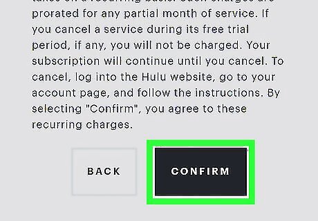 Tap Continue to confirm. This adds the monthly HBO purchase to your Hulu account.