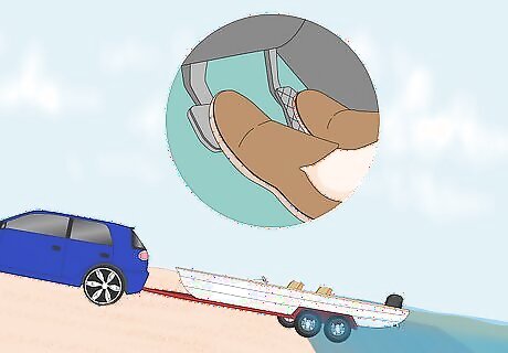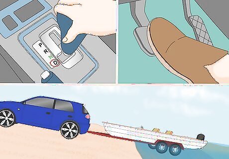 Get in your vehicle and put it in drive while holding the brake so your vehicle won't go backwards into the lake.
