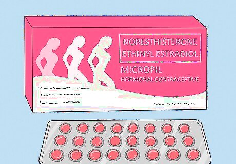 Ask about oral contraceptives (for women only). Hormonal fluctuations linked to the reproductive cycle often produce changes in your skin’s alkalinity and naturally produced oil, leading you to develop hormone-linked acne. Oral contraceptives help to regulate levels of estrogen and progesterone that can cause you to get acne when they are out of balance. Combination oral contraceptives that contain both estrogen and progesterone are effective at preventing acne; some examples include Yaz, Ortho Tri Cyclen-Lo, and Estrostep. Women who are overweight or who actively smoke cigarettes should not take oral contraceptives due to increased risk of developing blood clots and strokes.