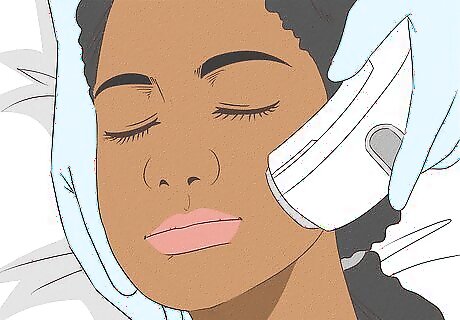 Ask about photodynamic treatment. Photodynamic treatment is an in-office dermatological therapy that consists of using a medication that is activated by a light or a laser to shrink sebaceous glands, therefore limiting oil secretions that cause acne. Your dermatologist coats the affected area with a photosensitizing ointment that is absorbed into the skin for 30 minutes to three hours. From there, you sit underneath a lamp or have a laser treatment that causes your sebaceous glands to dry out and therefore shrink. This treatment takes place up to three to five times with a few weeks between each session. This treatment is both effective at addressing current acne concerns and also serves as preventative maintenance.