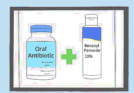 Ask about a combination treatment. Retinoids and antibiotics may be used in conjunction to treat more severe comedonal and/or inflammatory acne. A topical retinoid is applied in the evening and antibiotics are taken in the morning to do double duty while managing acne-causing sebum and bacteria. Your dermatologist may also recommend combining your antibiotic treatment with a benzoyl peroxide cream. In addition, your dermatologist may prescribe a topical antibiotic. This is often already combined with a retinoid or benzoyl peroxide for easy and convenient use.