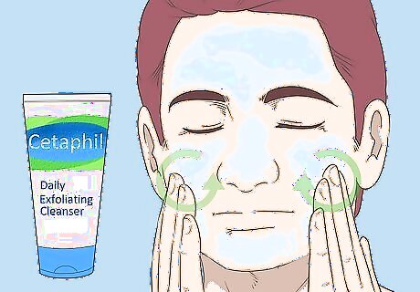 Exfoliate twice a week. Exfoliating removes dead skin cells and debris that accumulate over your skin and clog pores. As with too much washing, exfoliating too often can irritate your skin; thus, limit this to two to three times a week. After washing your face, apply a small amount of the product and gently rub onto the skin using a circular motion. Avoid exfoliating around the eyes. Rinse off the product and pat dry your skin. Avoid harsh products and applying too much pressure. This will only irritate your skin. Ask your dermatologist for advice on the best exfoliation products for your skin. Learn more about how to Exfoliate Your Skin.