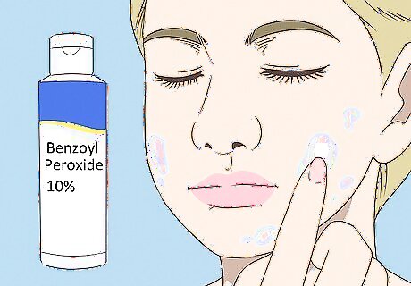 Try benzoyl peroxide. Benzoyl peroxide comes in the form of topical lotions, creams, and gels. It is effective at treating mild to moderate acne because it causes the outer layer of the epidermis to shed. When applied on the skin, benzoyl peroxide breaks down into benzoic acid and oxygen that are toxic to the bacteria that cause acne. Apply the benzoyl peroxide to the affected areas with acne after washing your face with a gentle cleanser and warm water. It should typically be applied twice a day or as described by your dermatologist. Side effects include mild skin irritation, tingling, and dryness. The side effects are usually more severe if your skin is already dry.
