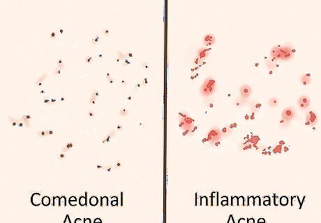 Recognize comedonal and/or inflammatory acne. Comedonal acne consists of small whiteheads and blackheads that are the result of oil and dead skin cells that clog pores. Inflammatory acne is a step beyond comedonal acne, where the blackheads and whiteheads gain an inflamed, red halo and also lead to red bumps and pimples. Comedonal acne is most commonly found on the chin, nose, and forehead.