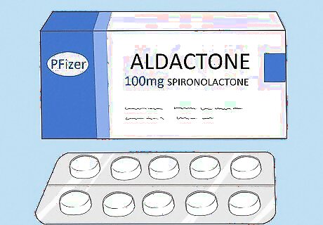 Ask about spironolactone. Spironolactone is a medication that can be used to treat acne, particularly in post-adolescent patients. It work by reducing the amount of sebum, or skin oil, secreted by the glands by blocking the hormone aldosterone. Spironolactone was originally used to treat hypertension and congestive heart failure. Its ability to treat acne was discovered during clinical trials when female patients started reporting less acne. Although this medication is not indicated for acne, many dermatologist prescribe it off-label. Side effects of spironolactone include lightheadedness, increased urination, and breast tenderness.