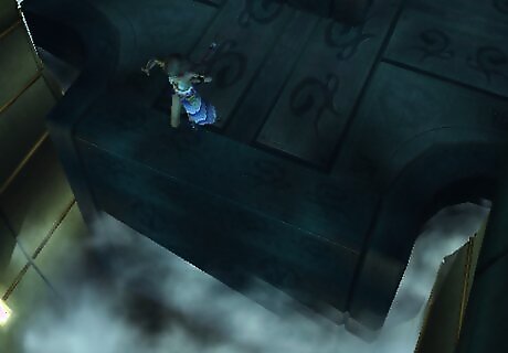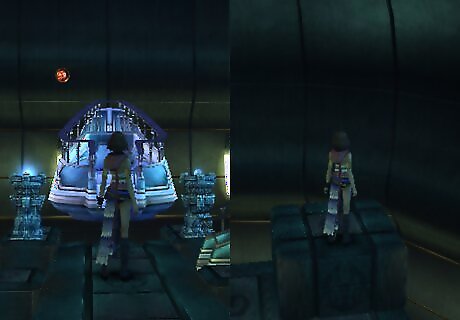 Use the middle lift to go up to a second small secret area and jump on the platform there as well,opening up the second hidden switch. This will open the path to the dark knight dress sphere.