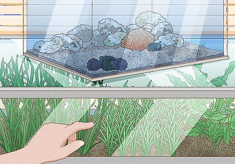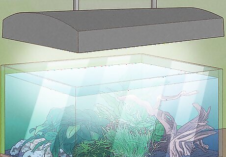 Purchase and install lighting to support plant growth. Just like other plants, your aquarium plants will need light to stay alive. Light is needed for plants to undergo photosynthesis, which gives them their energy and nutrients. Check the light needs of your individual plants, as they can vary from plant to plant. Full-spectrum fluorescent and LED tank lights are both great options. Plants can also get some light from nearby windows. Some plants require a lot of extra light, so do your research before you make a selection. It's recommended that when you start out, stick to less than 2.5 fluorescent watts per gallon unless you put a carbon dioxide system in place.