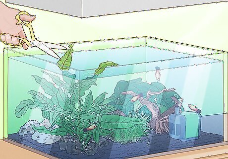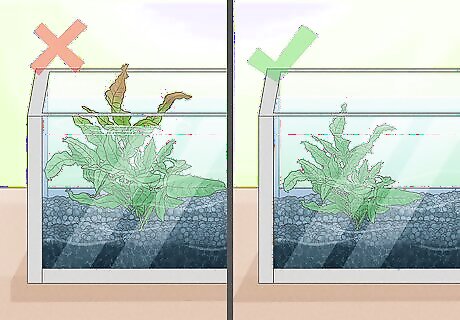Prune plants that outgrow the tank so that they won’t decompose. Most plants grow quickly, so pruning will be a necessity. If the plant outgrows the tank, the part of the plant outside the cage will die. Use sharp scissors to carefully cut away the excess plant. As an alternative, you could choose slow-growing plants.