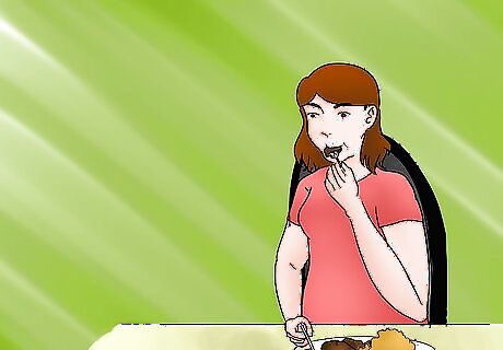 Promote healthy eating for its own sake. If you think that weight loss is the healthiest goal for them, don't try to hide that, but make it clear that the goal is health rather than vanity. Reinforce the idea that good health is for everyone. Find ways that your whole family can eat well, not just your heavy teen. If you're stricter with a heavy daughter than with her skinny sister, your heavier daughter will get the message that health is not equally important for everyone. Have everyone (yes, everyone) in the family fill at least 1/3 of their plate with fruits and veggies. Don't buy red meat often; try lean meats and fish instead. Incorporate fruits and vegetables into snacks and desserts: carrots and dip, apples and caramel, strawberries with whipped cream, bananas with hazelnut spread, etc.