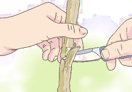 Strip off any bark. Some people use kudzu bark for various craft and sewing projects. Remove the bark from the larger vines by going to the base where it meets the ground. Use a pair of sharp shears or a knife to peel away sections of bark. Be prepared to tug a bit to remove it, as the bark will be stuck rather firmly to the inside of the vine. The bark itself can be rather easy to tear once removed, so be careful when handling it if you want it intact.