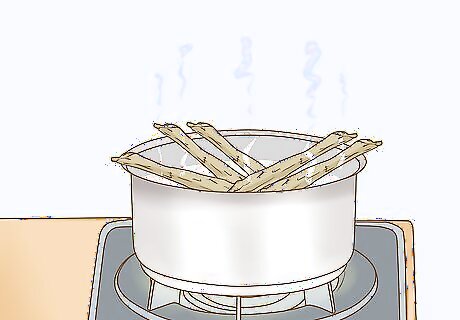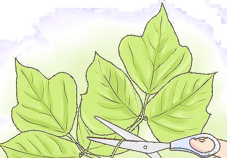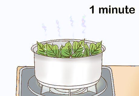 Blanch the leaves. After you’ve removed the leaves, place them in boiling water and remove after one minute. This will clean off any extra dirt and kill any kudzu bugs. If you plan to eat the leaves, boiling them will also remove the fine hairs on their surface.