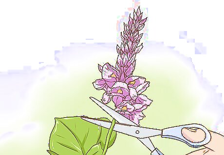 Pick the blossoms. Use scissors or garden shears to sever the flowers from the small stems that attach them to the larger vines. The flowers will be purple in color and will smell strongly of grapes. Look for the flowers that are open if you plan on using them for cooking. It is possible to keep the flowers for up to one day in the refrigerator. Remove the stems from the blossoms before using. Boiling them will also cleanse them of dirt and remove any bugs.
