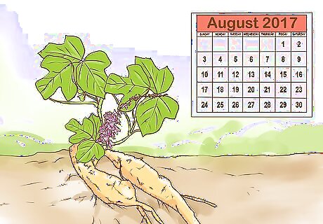 Harvest at the right times. Kudzu can grow almost anywhere, but you are less likely to find significant growths in the winter periods. The winter weather kills off many of the leaves and green shoots of the kudzu, making the roots easier to access in colder weather. If you are interested in the leaves, then it is best to harvest them in the late spring and summer. The flowers reach their peak in August and stay active until September.