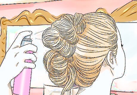 Set your style with a light misting of hairspray. Choose a lightweight hairspray, then lightly mist your messy buns. Avoid using too much hairspray, or anything that is too heavy, or you will weigh the buns down.