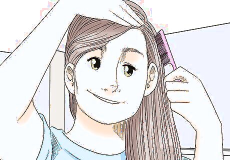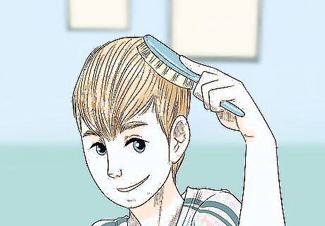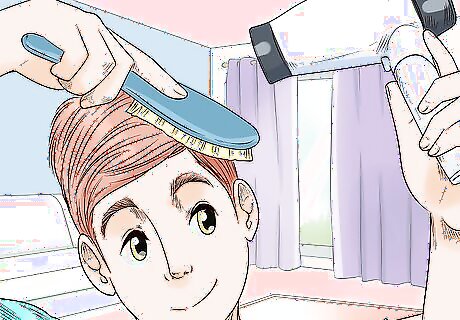 Blow dry the hair below your visualized lines downwards, if needed. Use a brush or comb to smooth the hair on the sides of your head downward as you blow dry it. Skip this step if the hair on the sides of your head is very short, or if it sticks down naturally.