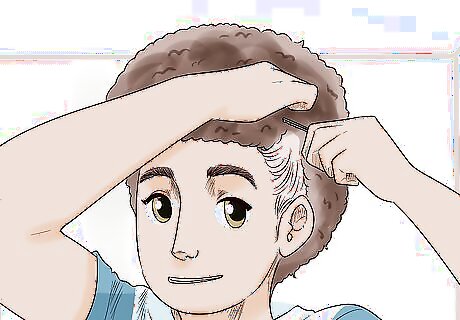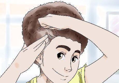 Mist your hair with water to make it damp. Comb your hair with your fingers while you mist it to ensure that each strand gets damp. This style will create an Afro that runs from your forehead down towards your nape. It works best on natural, textured, or African American hair. For best results, your hair should be at least the length of your finger when stretched out.