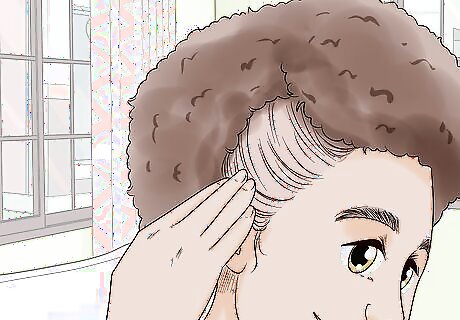 Repeat the process for the other side of your head. Work some gel or wax through the hair on the right side of your head. Slick the hair from your temple straight back, and the hair above your ear at a slight upward angle. Secure the hair with bobby pins as needed. When you are done, you should have an Afro running from your forehead down to your nape.