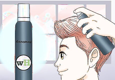 Set your style with hairspray. Choose a lightweight hairspray, and apply a light misting to the front of your hair. Smooth down any stray bits of hair that are sticking out, and set them with more hairspray.