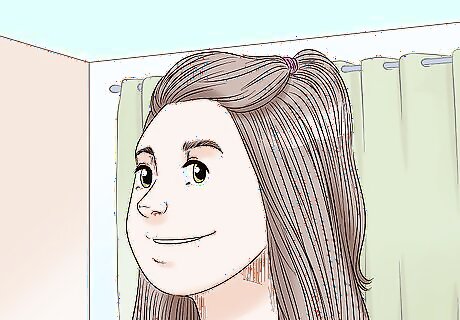 Pull your hair back into a half-up ponytail. Slide your thumbs back through your hair at about temple-level. Gather everything that is above your temples into a half-up ponytail in the back of your head. Do not tie the ponytail yet!