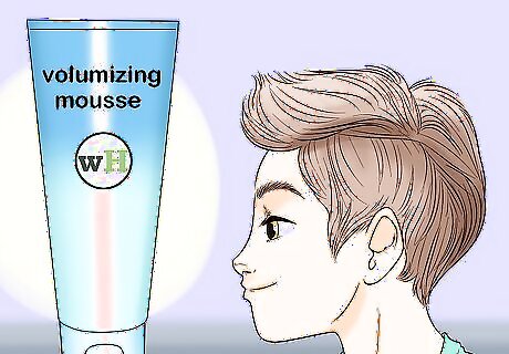 Work a volumizing product into the roots of your mohawk, if needed. Choose a volumizing mousse or powder, and apply it to the roots of your mohawk. Use your fingers to distribute the product upwards through your hair. This will help the mohawk stand up. If your hair is very thick and stands up on its own, then you can skip this step.