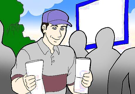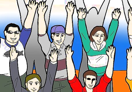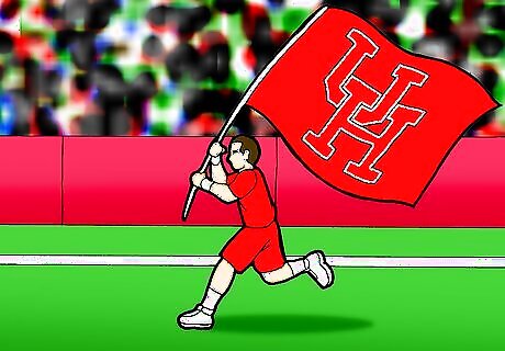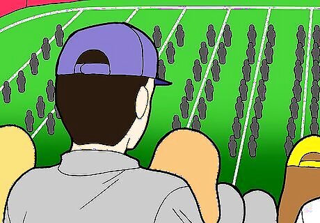 Participate in the stadium wave. The wave usually takes place during time-outs and other "time killer" breaks. They start out from the sidelines, where people can encourage others to join and continue at least halfway to two thirds around the stadium before it dies out. The wave is repeated until the game resumes or if people seem uninterested at the time.