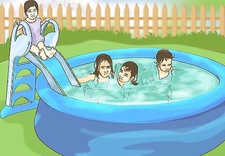 Set up a water slide. Turn on the sprinklers. And have lots of water fun. This is only suitable in areas where water wastage is environmentally manageable. Play shoot and splash games with water guns. Pretend you're a mermaid.