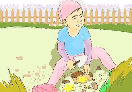 Be a treasure hunter. Pretend to be on an adventure and that you're looking for hidden treasure. Do some digging and you may even find some hidden gems. Plan, make and do an outdoor scavenger hunt. Invite a bunch of friends over to find the things you've added for the scavenger hunt. If you don't want to know where the things are, have a sibling or parent set up the scavenger hunt for you.