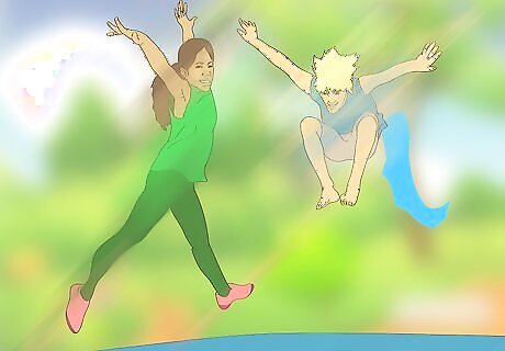 Go trampolining. If you have a trampoline, practice some jumps and tricks. See how high you can jump. You could invite friends over and play trampoline games together.