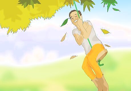 Make a rope swing and hang it from a tree. Get mom or dad to check that it is hanging safely, or to hang it for you. Then start swinging away on the rope. Be sure to use only the strongest boughs to hand the rope swing from.