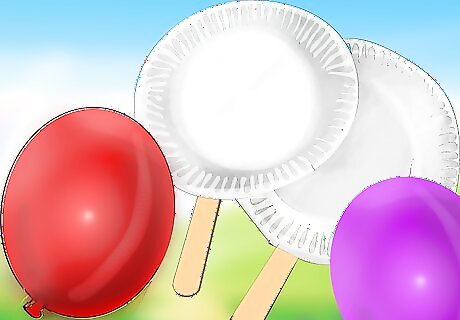 Play balloon tennis. Blow up a bunch of balloons. Buy fly swats from the dollar store to serve as "rackets". Swat the balloons into a large bucket. This should only be done when the weather is not windy or breezy. A fun alternative is to play water balloon baseball, using plastic baseball bats. This can be done even when it is windy outside.