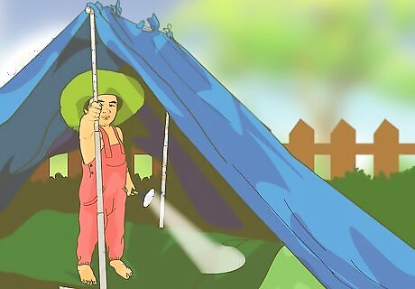 Build an outdoor fort, tent or teepee. This can be as simple or as complex as you like, just be sure to choose a nice surface such as soft grass, so that it's clean underneath. Add cushions, pillows, a picnic blanket and your favorite items for a cozy outdoor retreat to relax in. If you want to sleep in the backyard overnight, set up a proper tent. You could even do some camp cooking out there and pretend you're in the wilds.