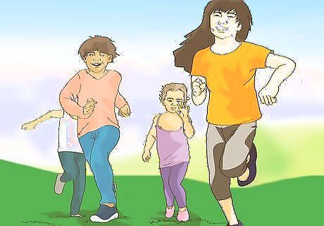 Spend time with your pets. Take your dog(s) for a walk or run the dog(s) through an obstacle course. Lie down in the grass and watch as your cat plays tiger in the grass. Play with your rabbit, guinea pig or other pet in supervised outside time.