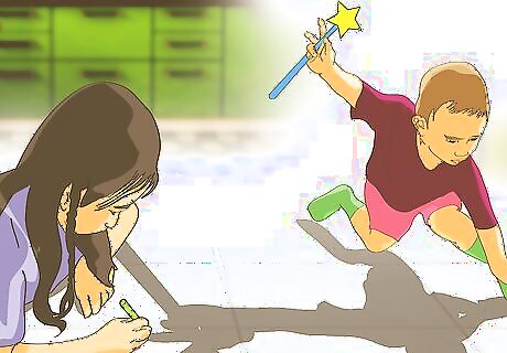 Do shadow art. Have a friend stand in the light, casting a shadow. Trace around your friend's shadow. Then trade places and have your friend trace around your shadow. Once you have the shadow outlines drawn, color them in with all sorts of chalk colors. You can make patterns, do different sorts of shading and even add new clothes! Try standing, sitting and squatting in all sorts of positions to make for fun shadow creations to color in. Use chalk for other fun too, such as drawing a city with a race track for your cars and a big car park for the shopping center. Or, write messages of kindness for your neighbors to read. Draw games on the ground with the chalk, such as hopscotch.