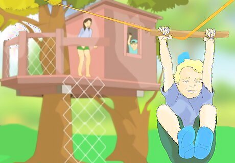 Make a zipline. Tie a strong rope from one tree straight to another tree in front of you. Get your parents to check it is okay. Get a bike handle and attach it to the rope to hold onto. Go for a fun zip.