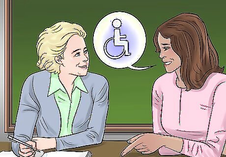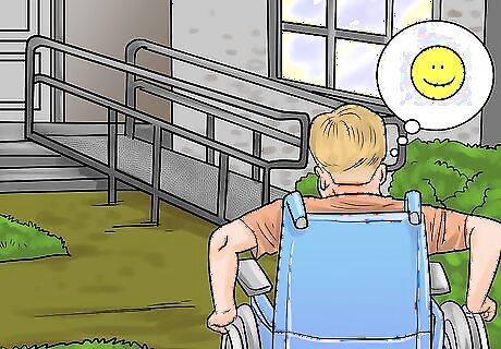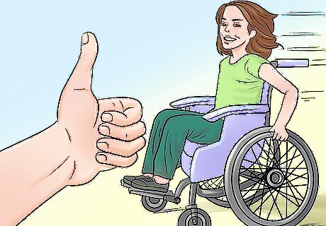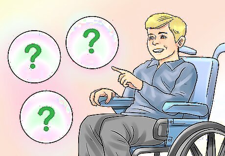 Help make schools and classrooms more accessible. A child in a wheelchair will thrive in an educational environment where they can move around with the same ease as able-bodied children. Since you understand the child's needs, you are well-positioned to work with the child's teacher, or with school administrators, to ensure the child gets the most they can out of every learning experience. Keep in close contact with the child's teachers, and let them know that if they have any questions or concerns they should talk to you directly. Arrange to tour the classroom and other facilities the child will use during the school year so you can make suggestions for enhanced accessibility. For example, you might recommend the teacher make the aisles between all the desks wider, not just the aisle next to the handicapped desk, so the child in a wheelchair can move to other parts of the room and work with other students.