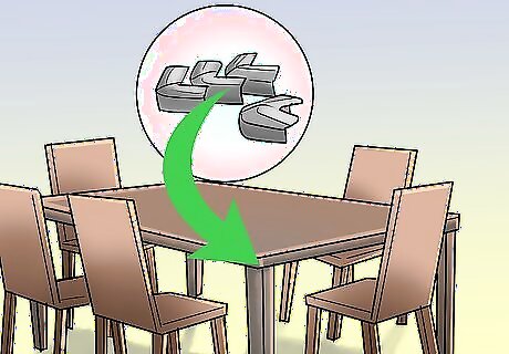 Secure loose objects. Loose objects, such as curios on shelves, can be hazardous to a child in a wheelchair. In addition to the hazard, you want the child to be able to manipulate and control objects independently, without having to ask for help. Avoid placing unsecured objects near the edge of tables or shelves where they could be easily knocked off. You can use hook-and-loop fastener for the child's toys and other items so they can more easily control them and put them back in their proper place when done. Hook-and-loop fastener or magnets also work for dinnerware and glasses, so the plate or bowl stays in place and the child can eat and drink independently. You can find inexpensive rolls of adhesive hook-and-loop fastener or magnet strips at most discount stores, or at crafting stores. If you have cabinets or shelving units for the child, make sure the drawers are secured so the child can open and close them without pulling them out.