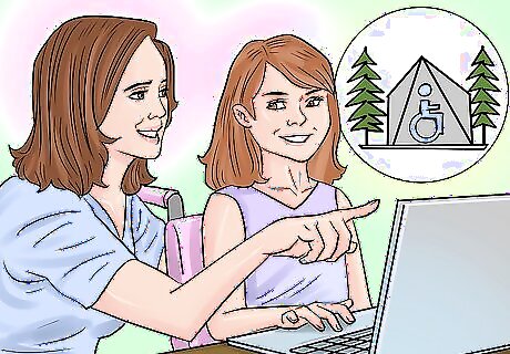 Find accessible vacation spots. National laws in many countries, including the United States and Canada, require places of "public accommodation" (such as hotels and amusement parks) to be accessible to people in wheelchairs. However, some are more accessible than others. For example, if you enjoy skiing, there are many ski resorts in Colorado that have staff trained to provide adaptive, one-on-one skiing lessons for children with disabilities. Many hotels have staff specifically trained to assist families traveling with children in wheelchairs, and may have activities in which the child can participate. Resorts and vacation destinations with a focus on exploring and interacting with nature and the outdoors often have specific programs for children in wheelchairs. Conduct research online or talk to other families with children in wheelchairs to learn about the best vacation spots that will allow the child to fully participate in activities.