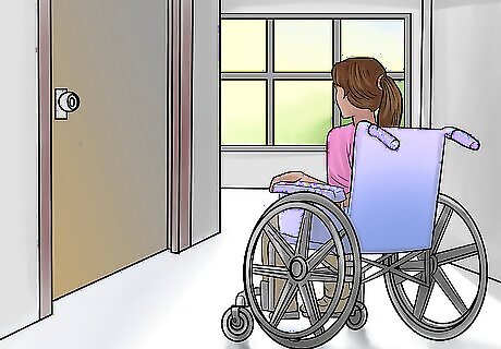 Ensure open access to all parts of the house. When arranging furniture, there should be enough room for the child in a wheelchair to move freely about the rooms – and from one room to another – without needing any assistance. Creating a full circle of space around each room may be the easiest option. This way the child can get to every part of the room. If your home has two stories, the child's bedroom should be on the main floor. You may want to consider installing an elevator, although this is an expensive modification. There should be at least 32 inches (81 centimeters) of clearance in doorways, and 42 inches (107 centimeters) of clearance in hallways. Make sure all interior doors are accessible so the child can open and close them without assistance. You may have to lower door knobs so they are within reach.