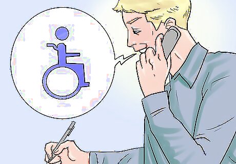 Make arrangements when booking your trip. Making reservations online may not be an option if you are traveling with a child in a wheelchair. You need to talk to someone and explain the need for accommodations in advance so there won't be any unpleasant surprises. If you're flying to your destination, speak with someone on airline staff when you book the flight so you can explain the accommodations the child will need. Try to arrive at the airport an hour earlier than you normally would, so you have time to go through security and get to your seats. Remember that airlines allow disabled passengers to board first. If you're staying in a hotel at your destination, talk to hotel staff before you arrive rather than booking a room online. This way you can get direct confirmation that the room will be accessible for the child and have any specific requirements covered.