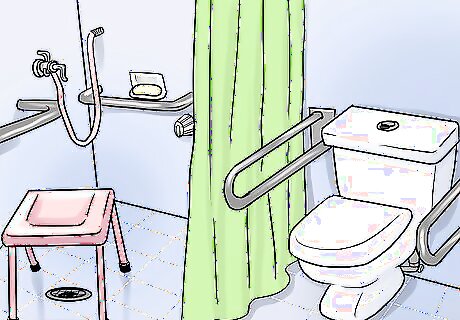 Provide stability and space in the bathroom. Modifying a bathroom can be one of the more expensive projects to make your home safe and navigable for a child in a wheelchair, but these modifications are essential to enable the child to be independent. Install a roll-in or walk-in shower so the child does not need help climbing in and out of a tub. This will be especially important as the child gets older and develops a stronger sense of personal privacy. Make sure your shower or tub includes a bench where the child can sit that is safe and doesn't get slick with soap and water. Bars near the shower or tub and on either side of the toilet can help the child transition in and out of their chair. You may have to move the water knobs and shower controls so that the child can easily reach them. Provide enough room around the toilet so the child can use the toilet without assistance. There should be enough space for the child to turn the wheelchair around, including a 48- by 56-inch (122- by 142-centimeter) space in front of the toilet and at least 18 inches (46 centimeters) between the toilet and any side wall.
