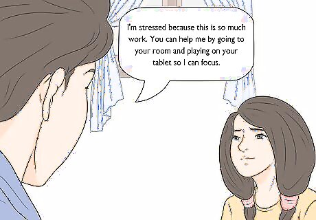 Label your emotions in front of the person. Autistic people can be emotional sponges, absorbing all the stress that they see from others around them. You can reduce stress by telling your loved one how you feel and why. "I'm stressed because this is so much work. You can help me by going to your room and playing on your tablet so I can focus." "I'm frustrated because we are having problems with the move. It's not your fault." "I'm feeling overwhelmed. I need to be alone." "I'm sorry I raised my voice. I didn't sleep well and it's hard for me to think straight. Normally I know better, but today I forgot."