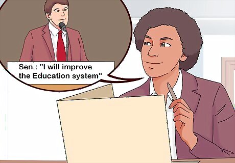 Familiarize yourself with different candidates’ stances. Educate yourself on the upcoming elections in order to get to know the different candidates and what they stand for. Watch the news and debates on TV, and do some research online on websites like USA.gov to stay informed and to determine which candidates you should support in order to help improve the education system. Pay attention to all elections, from local board of education elections to presidential elections. These are all important and influential in different ways. If you aren’t sure which candidate values education more, consider supporting the one who wants to support and encourage teachers, improve school structure, and/or make higher education more accessible.