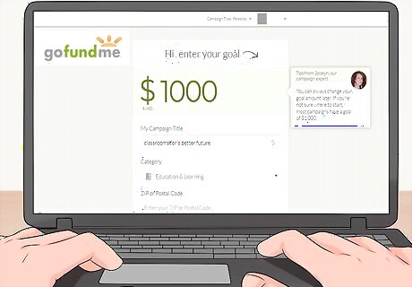 Start a fundraising page for a local school. If you want to help on a more local level, this may be a good option. Contact schools in your community and see what kind of help they need. Then, go to a site like GoFundMe, at https://funds.gofundme.com/dashboard/create, and create a fundraiser page for it. Many people have started GoFundMe pages and successfully raised money through them for educational field trips, new playgrounds, classroom tablets, and more.