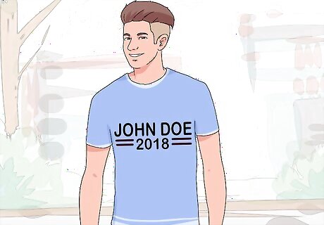 Display paraphernalia that advertises your preferred candidate’s name. Show support for your preferred candidate publicly by wearing t-shirts, hats, and buttons that display their name. You can also put signs in your yard or bumper stickers on your car that have the candidate’s name on them. This may make family, friends, and others who you come in contact with interested in learning more about the candidate, which could eventually lead to more votes for them.